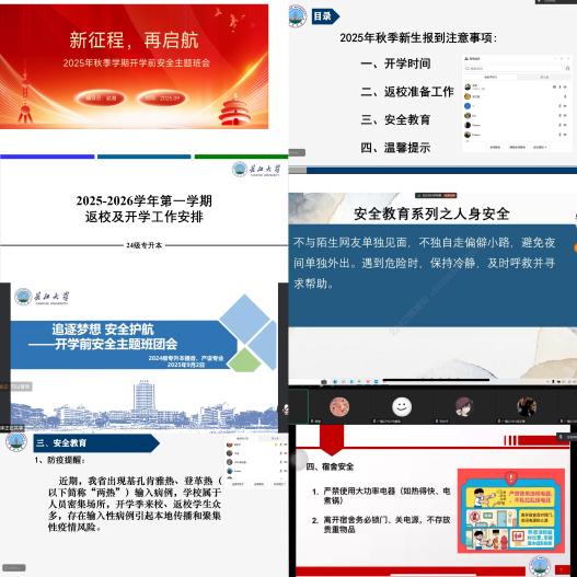 班会内容全面覆盖了开学工作的重点环节。针对新生,重点就报到流程、宿舍分配、校园一卡通使用及安全教育等工作内容进行了系统讲解,助力新生尽快适应老员工活;面向老生,着重围绕学业规划、实习实践安排及新学期选课注意事项等方面开展详细说明,促进老生及时调整状态投入学习。此外,各年级辅导员结合典型案例,深入剖析了人身与财产安全、交通安全、消防安全及防溺水、防诈骗等安全教育内容,切实增强全体员工的安全防范意识和应急避险能力。
