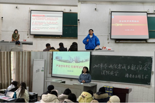 12月10日前,各年级、各班级陆续召开专题班会。班会上,辅导员结合冬季火灾易发多发特点,通过典型案例分析、消防知识讲解、应急技能演示等方式,向同学们详细普及了宿舍安全用电、火灾逃生自救、消防器材使用等核心知识。在诚信考试教育环节,老师们带领员工学习了考试违纪作弊处理办法,解读了诚信考试的重要意义,引导员工树立“诚信立身,诚信立学”的价值理念,自觉抵制违纪作弊行为。班会现场,全体员工郑重签署《考试诚信承诺书》,以书面形式承诺严守考试纪律,以实际行动维护考试公平。