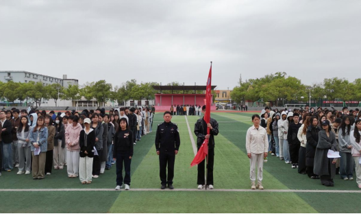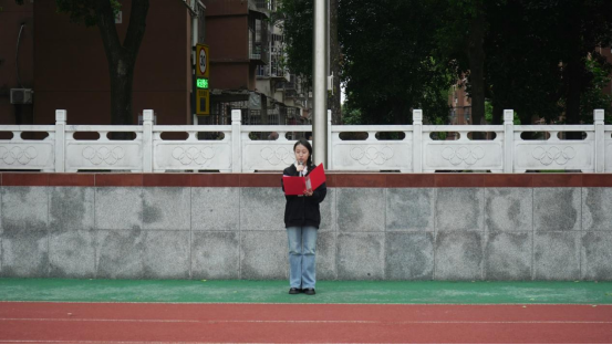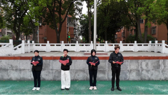 伴随着《义勇军进行曲》,升旗仪式正式开始,全体人员肃立、行注目礼并齐唱国歌。戎光志愿服务队带来朗诵《戎光逐光,不负韶华》,抒发青年学子的爱国情怀。员工代表魏思欣宣读《筑牢国家安全防线,争做时代模范先锋》倡议书,呼吁同学们提升国家安全意识,将个人成长与国家发展相结合。