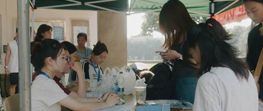 为了迎接新生的到来,学校及学院相关部门做好充分的准备工作,提前搭好遮阳棚,摆好桌椅,为新生们的到来保驾护航。8月23号中午12点,迎新工作人员在接待点准备就绪。