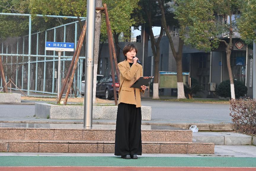 随后,播音22102班的王心悦同学进行以“勇敢追梦,不负本心”为主题的国旗下讲话。她提到,新时代的青年,应当“勇敢地跨出舒适区,体验人生更多的可能。”王心悦分享了作为当代青年该如何奋进的四个方法,并呼吁我辈青年牢记党的教诲,立志民族复兴,不负韶华。