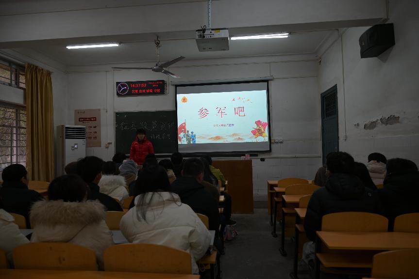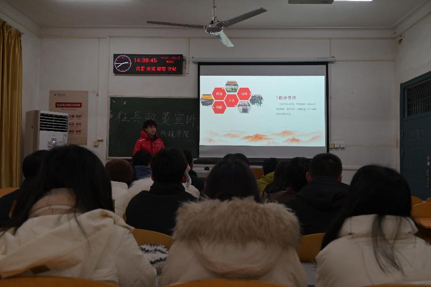 最后,辅导员樊老师总结到:今天我听了刘林飞同学的宣讲后,更觉得参军入伍无上光荣。同学们,我们身处一个伟大的时代,希望大家及积极响应祖国的召唤,投身军营,用青春和热血书写无愧于时代的华丽篇章。