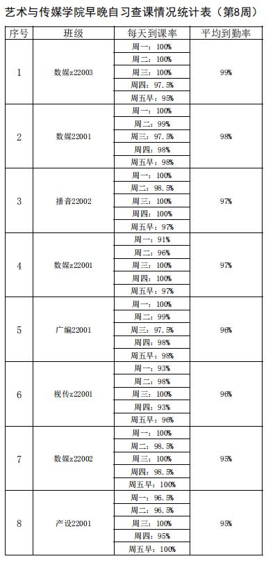 艺术与K1体育早晚自习查课情况统计表(第8周)