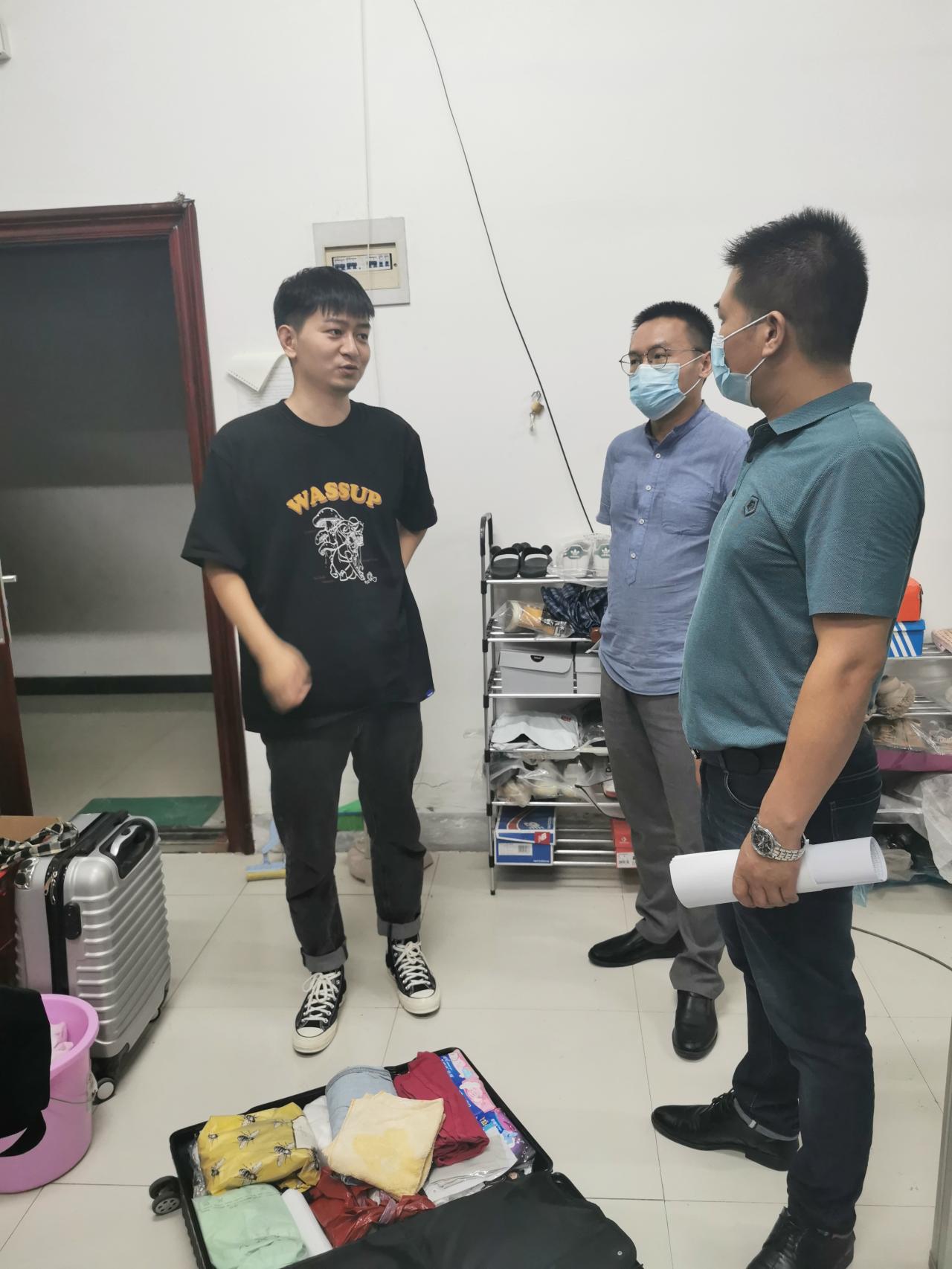 (通讯员:郑瑞丰)2020年8月27日,按照学校“分批、错峰、有序”返校报到要求,艺术与K1体育迎来了第一批返校的员工志愿者。当日晚上20时许,学院副经理郑瑞丰,办公室主任刘武洋,学工办副主任赵湘等学院领导深入华林员工公寓看望返校员工。
