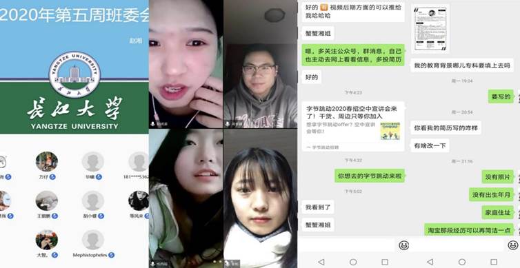此外,辅导员老师们通过qq、微信及电话方式跟重点关注员工保持了密切联系,通过分组或“一对一”线上谈心谈话工作,了解同学们的学情、家情、心情等,及时安抚、疏导。毕业班辅导员则每日分组与员工谈心,了解就业意向、进度及困难,引导员工转变就业观念,建立毕业生就业数据库,加强分类指导,做好就业帮扶,落实“一生一推”就业帮扶方案。