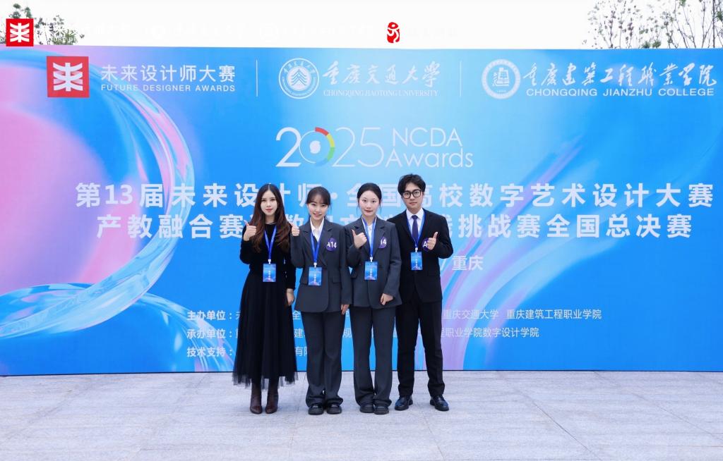 (通讯员:王苒伊)2025年11月15日第13届未来设计师・全国高校数字艺术设计大赛(NCDA)产教融合赛道数智文创实践挑战赛全国总决赛在重庆圆满落幕。K1体育学子吕季琳、肖勤雯、曾令龙凭借扎实的专业功底与创新的设计理念脱颖而出,最终斩获国家级二等奖、省级一等奖的优异成绩,专任教师王苒伊荣获本次大赛优秀指导老师荣誉。