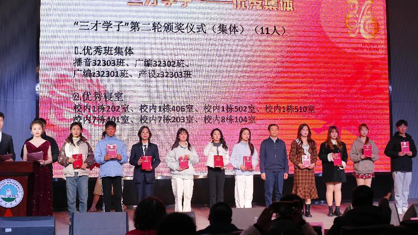 在本次“三才学子”颁奖典礼上,校领导和院领导依次为“志愿服务之星”、“学习之星”、“媒体之星”等11类“三才学子”颁奖,现场大屏逐一展示其宣言、事迹,供同学们学习和树立目标。本次颁奖典礼不仅是对各“三才学子”的肯定与鼓励,更是希望每一位同学能以三才学子为榜样,争做有理想、敢担当、能吃苦、肯奋斗的新时代好青年。