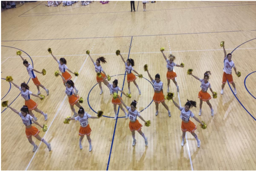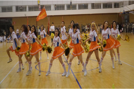 接下来出场的是艺传学院的啦啦操队伍,他们的表现也丝毫不逊色。身穿橙白队服的艺传啦啦操队一进场便收获无数呼声,场下的一句句“艺传加油”是对他们日复一日刻苦训练的最好肯定。歌曲响起,队员们镇定自若,像一团火焰随着歌曲的节奏翩翩起舞,用激情带给观众更多惊喜,在气氛的最高点,他们成功点燃了全场,尖叫和欢呼声一刻不停。