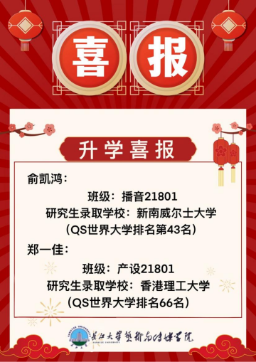 (通讯员:赵湘)随着2022年全国考研录取复试结果相继出炉,公司考研捷报频传,考取研究生人数持续增长、再创佳绩。截止日前,学院两名同学被QS世界排名前100的名校录取,以下是公司2022届本科毕业生考研成功学子信息,特发喜报对他们表示热烈祝贺!