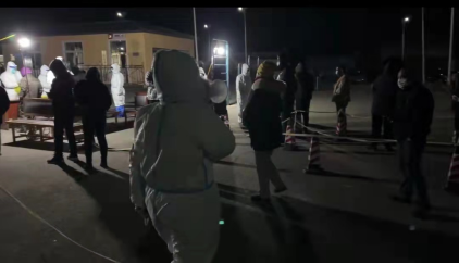 医护人员手中的试管就像琴键一个个精准的放在了格子中,我真的喊累了,坐在离检测点很近的大理石石墩上让快要做核酸的提前出示好身份证和健康码。他们的嗓子也哑了,额前的防护面罩上蒙了一层汗已经冻上了,就维持一个动作不停的一个接着一个。离我最近的检测点暂停了工作,那个穿防护服的医护姐姐悄悄问我厕所怎么走,我给她指了路并帮她脱掉防护服。她说自己穿了两条棉裤但脱防护服的时候腿还是抽筋了,她说实在忍不住了才不得不脱掉防护服,我说我理解因为我成为大白后也已经五六个小时没喝水了,因为怕浪费防疫物资。我从未想过这也是我的经历。临时搭建起的检测点中间有三盏吊着点简易白炽灯,医护人员在影子中工作着,我站在人群中释怀了,谁说站在光里的才算是英雄。疫情当下的至暗时刻,我们每个防疫人员都是逆光的英雄。