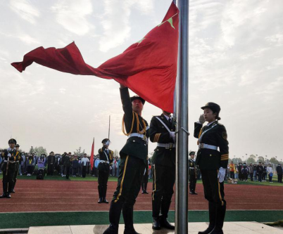 早七点整,升旗仪式正式开始。迎着朝阳,学校国旗护卫队成员迈着铿锵的步伐来到了国旗台下,全场一片肃静。在激昂的《义勇军进行曲》中,升旗手振臂一挥,鲜艳的五星红旗徐徐展开,在初升的阳光映照下,全年级师生的注目中,迎着初升的太阳,在晨曦中迎风飘扬在k1体育官方网站的上空。