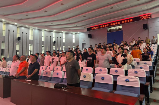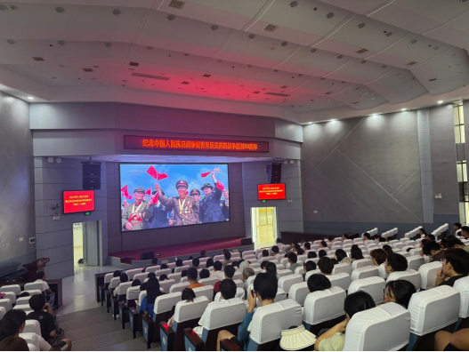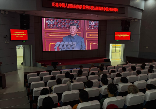 上午9时,师生们在报告厅整齐就座。随着天安门广场上礼炮的轰鸣声响起,阅兵仪式正式拉开帷幕。伴随着庄严的国歌奏响,全体师生自发肃立,高声合唱,激昂的歌声回荡在整个报告厅,浓厚的爱国情怀在每个人心中激荡。