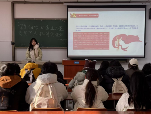活动中,各团支部集中学习习近平总书记《扩大内需是战略之举》《因地制宜发展新质生产力》等重要文章,并深入学习贯彻习近平总书记近期一系列重要讲话和重要指示批示精神。随后,各团支部认真学习“十五五”时期经济社会发展必须遵循的原则,并持续推动研究党的二十届四中全会精神。在此基础上,各团支部结合第十二个国家宪法日及“宪法宣传周”,开展宪法知识学习与法治意识培育。