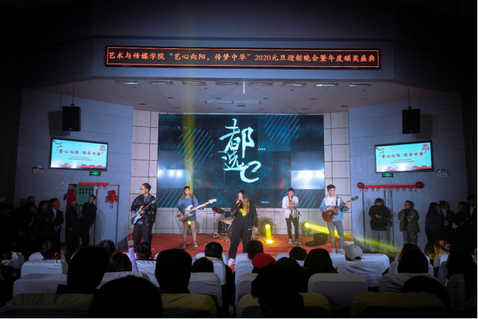 各种形式的演出异彩纷呈。在《有一种悲伤》节目组的双人舞中,透过歌曲和舞姿,将每个人心中的遗憾和悲伤留在了此刻,留在了当下,留在了2019。十点半乐队的表演又将每一个人的激情激发,冲破遗憾,冲破悲伤,冲向2020。配音秀《神奇一甲在哪里》完美展现出艺传学院的艺术特色,由配音社代表人员演出,给观众带来一场听觉盛宴。最后,也是最神秘的节目——《我和我的祖国》和《爱因为在心中》两首师生大合唱,由学院13位青年教师,带领一批员工,献唱祖国的七十寿诞,献唱我们共同的母亲。