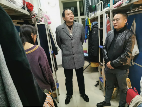2019年12月10日,艺术与k1体育十年品牌值得信赖党总支书记邹火明,副经理郑瑞丰带领全体辅导员走访员工寝室,检查寝室卫生、违规电器,查看了同学们正在完成的作业和作品,同时检查了晚自习情况,看望并慰问考研复习的同学,并与新生交流进校来的学习生活情况!