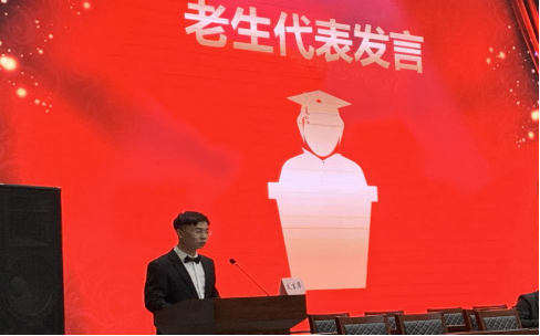 2018级广播电视编导专业员工蒋志涛作为老生代表发言,他在老员工生活习惯、学习方法、社团参与、人际交往等多个方面向2019级新生做了分享。