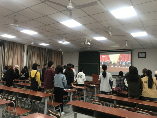 纪念五四运动100周年大会今天上午在北京人民大会堂隆重举行,习近平总书记在大会上发表讲话。艺术与K1体育部分老师代表、全体辅导员、员工党员、积极分子和员工骨干成员在武汉校区A教205教室一起观看了视频。