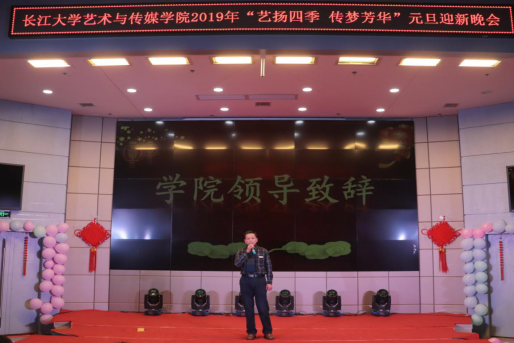 晚会开始前,由学院常务副经理戴德铸致辞。他用“奋发有为 锐意进取 实事求是 善作善成”16字总结了学院2018年全年方方面面工作;又以“服务双一流 建设双一流 奋力谋发展 改革谱新篇”描绘出学院2019年工作愿景。