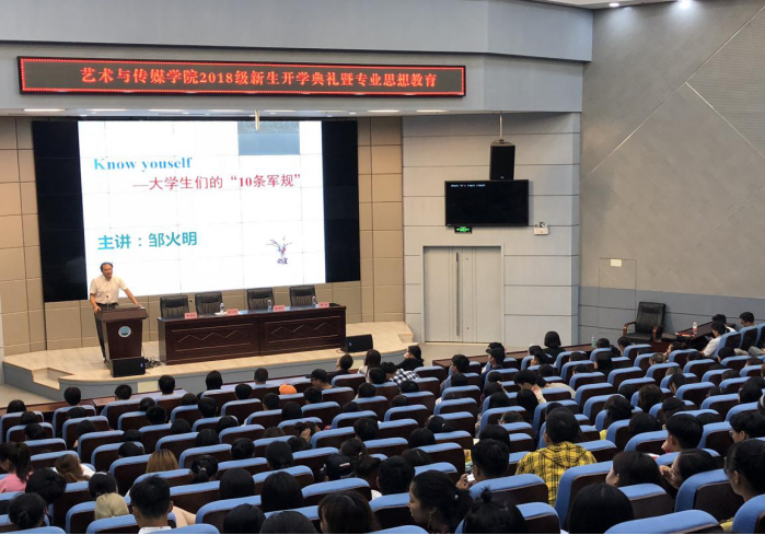 2018年9月29日晚19:00时,艺术与K1体育学2018级本科生开学典礼在校区学术报告厅举行。艺术与k1体育十年品牌值得信赖党委书记邹火明教授、常务副经理戴德铸教授、教师代表陈旗教授,2018级辅导员饶艳芹、史梦玲、赵湘以及全体2018级本科生参加大会。