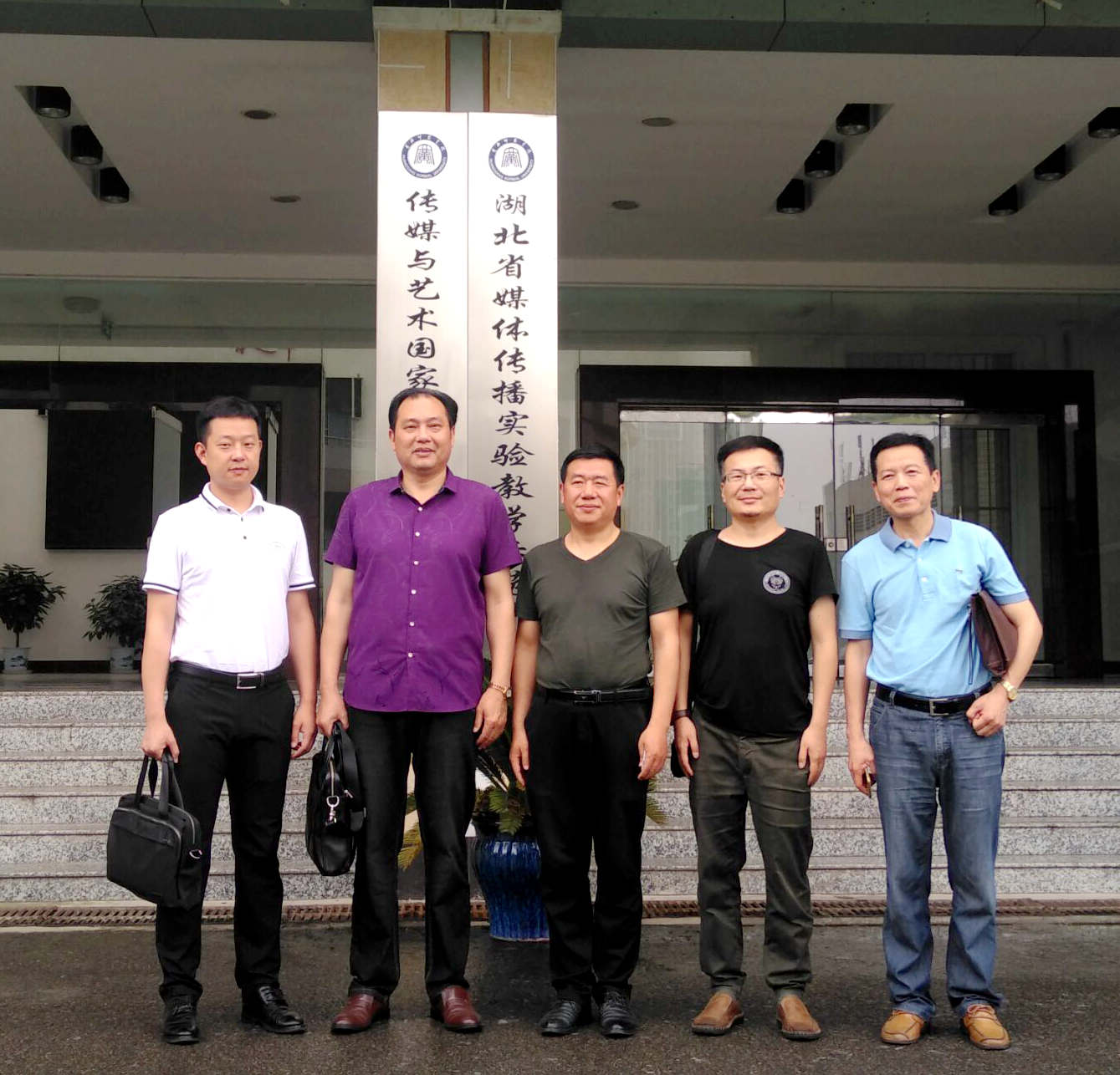 2018年5月21日,艺术与k1体育十年品牌值得信赖党委书记邹火明、常务副经理戴德铸、副经理梅国海等一行5人赴黄冈师范学院新闻与传播学院考察交流,受到了黄冈师范学院新闻与传播学院杜建东书记、沈嘉达经理的热情接待。双方就专业人才培养、团队队伍建设、员工实验教学等方面进行了广泛、深入的交流。 期间,邹火明一行还参观了新闻与传播学院国家级教学示范中心,实验教学中心副主任童保红就国家级实验教学中心建设等方面进行了详细介绍。