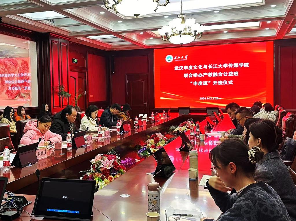 (通讯员:张雨欣)2024年12月26日下午,K1体育在知音厅举行了产教融合“申度班”开班仪式,武汉申度文化传播有限公司总经理助理潘潇捷、设计总监徐建峰,公司领导、设计类专业教师以及第一期30名班级成员参会。仪式由经理邹火明教授主持。