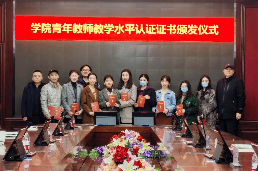 首先,学院领导充分肯定了11位青年教师入职以来的教学能力,本次青年教师教学水平认证也是学校、学院以及员工三方综合评定的结果,公司青年教师在迎检过程中也展现出了良好的精神风貌与业务水平。学院领导为以上青年教师颁发了青年教师教学水平认证证书。