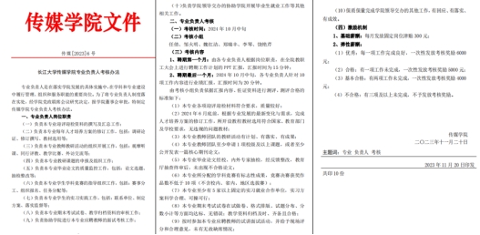 坚持制度建设促进发展,确保常态长效。一是出台《k1体育官方网站K1体育专业负责人考核办法》,选拔品学兼优、德艺兼备的青年教师担任专业负责人。实行教学科研、管理骨干相结合的“双培养”的专业负责人评聘机制,明确专业负责人在学科专业建设、组织服务等十个方面工作职责,实行“月基础薪酬+年奖励绩效”相结合的考核办法,真正做到多劳多得、优劳优得,确保各项工作保质保量完成。二是学院出台了修改出台《K1体育机构设置与岗位管理考核方案》(工作量版),实行以激活办学活力、职员动力、团队合力、成果效力为导向的教师薪酬制度,建立体现以增加贡献值为导向的收入奖惩分配机制,对在教书育人、科学研究、社会服务、员工竞赛指导等方面作出业绩的教师给予奖励,多劳多得、优劳优得,力争在全院上下形成积极作为,奋发有为的良好氛围。