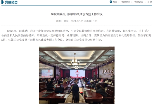 师德师风建设永远在路上,教育家精神历久弥坚。学院在2024年师德建设中取得了积极成效,教师的政治思想素质和职业道德水平得到了显著提升。接下来,学院将继续坚守“德育为先、师风引领”的理念,弘扬教育家精神,以更大的热情和更高的标准扎实推进师德师风建设,为学院和学校发展做出更大贡献。