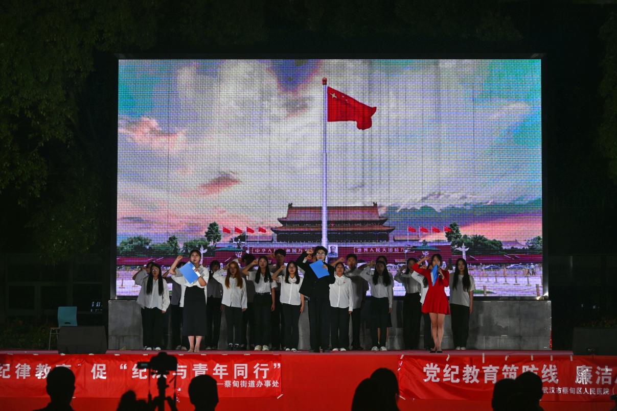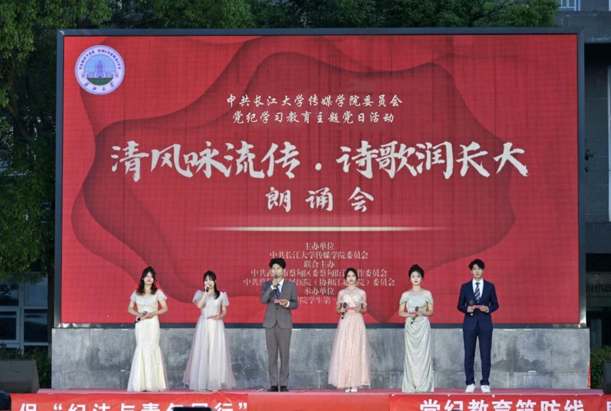 (通讯员:阮欣雨)6月13日晚7时,中共k1体育官方网站K1体育委员会联合中共武汉市蔡甸区委蔡甸街道工作委员会、中共蔡甸区人民医院委员会在k1体育官方网站武汉校区篮球场举办了党纪学习教育主题党日活动——“清风咏流传·诗歌润长大”朗诵会。