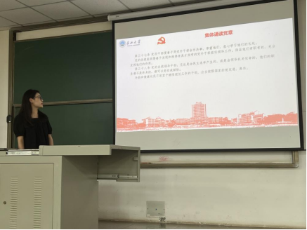 首先,在领读人的带领下,全体党员重温入党誓词;其次,各支部学习了以下内容:党章第六章《中国共产党章程》、党的二十大精神解读、《习近平著作选读》第一卷、观看视频——习近平总书记给参与“澳门科学一号”卫星研制的澳门科技大学师生代表的回信、同时集中学习《关于认真学习贯彻习近平总书记有关主题教育系列重要讲话的通知》等文件、开展《关于在主题教育中学习运用浙江“千万工程”经验案例的通知》《关于在主题教育中认真学习借鉴“浦江经验”的通知》相关活动、最后学习王蒙徽书记在荆州调研时讲话精神。
