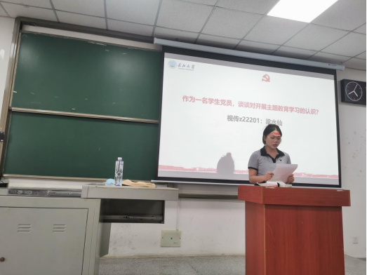最后,党支部书记赵湘针对开展主题教育学习并结合学院实际,强调了几点:第一,要强调要提高政治站位,强化思想认识,深刻领悟开展主题教育是我党的优良传统和重要历史经验。第二,要在深学理论上下真功夫,坚持原汁原味深入学、联系实际重点学。要在调查研究上下真功夫,念好‘深、实、细、准、效’五字诀。第三,要结合实际,深入挖掘资源,创新学习方式,扎实推动主题教育开展。