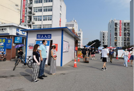 炎炎夏日,学校门口,下沉党员耐心引导,组织进行消杀和体温检测工作,查验健康码通行证,发放校园卡报到行程单等。食堂餐厅入口处,下沉党员们进行体温测量、维持就餐秩序,他们用行动践行着共产党员的初心和使命,为学校的开学安全防控工作筑起了一道坚实的防线。