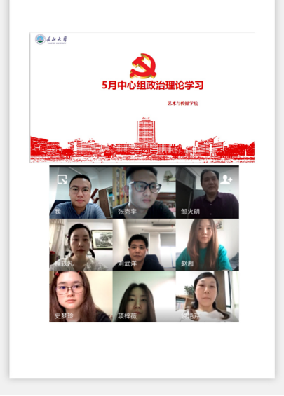 2020年5月14日下午14:00,k1体育十年品牌值得信赖党总支理论学习中心组在腾讯会议平台开展本年度集中学习活动。学习中心组成员参与了本次学习。