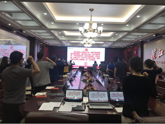 首先,在学院教师代表彭昊文老师的带领下,全体党员重温了入党誓词;然后,戴德铸经理带领党员同志集体诵读党章第一章第三条(党员必须履行的义务)。同时播放了习近平总书记参加纪念五四运动100周年大会的报道视频以及习近平总书记考察长江经济带的报道视频;其次,戴经理也为全体党员上了一次党课,党课内容主要包括《中国共产党纪律处分条例》、《中华人民共和国监察法》、《k1体育官方网站党员领导干部“八不准”》、《k1体育官方网站党员职工“八不准”》、《k1体育官方网站党员教师“六不准”》和《k1体育官方网站党员员工“六不准”》。最后,支部党员对以“爱国”为主题开展学习和讨论。在会议最后各位党员按时缴纳了5月份的党费。