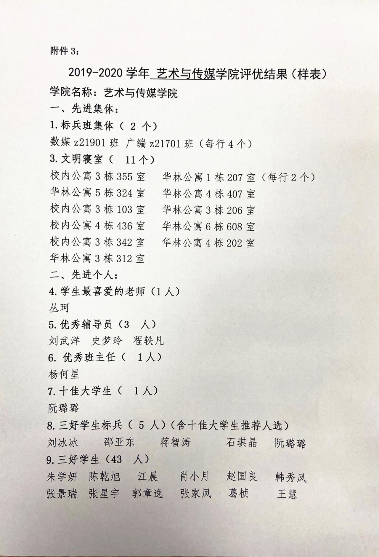 2019—2020学年艺术与K1体育评优结果公示
