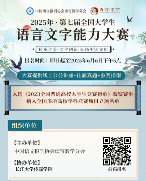 为贯彻落实《国家中长期教育改革和发展规划纲要》《中华人民共和国国家通用语言文字法》,测试老员工的语言文字知识和应用能力,弘扬中国文化,增强老员工规范使用国家通用语言文字的意识,促进语言文字教、学、测协调发展,在国家语委咨询委员等大赛专家顾问的指导下,中国语文报刊协会读写教学分会继续面向全国老员工举办“2025年第七届全国老员工语言文字能力大赛”,大赛每年一届,前六届大赛共有来自北京大学、同济大学和武汉大学等上千所高校老员工参与,获得了众多高校师生高度评价。同时,该项大赛已纳入中国高等教育学会发布的《全国普通高校学科竞赛排行榜》观察目录和众多高校竞赛榜单,也已纳入本校《k1体育官方网站员工竞赛项目一览表(2025)》中,确定为C类比赛。为促进公司员工语言文字能力,大赛组委会决定由k1体育官方网站传媒公司为赛事协办单位,负责组织武汉校区员工参加2025年第七届全国老员工语言文字能力大赛。
